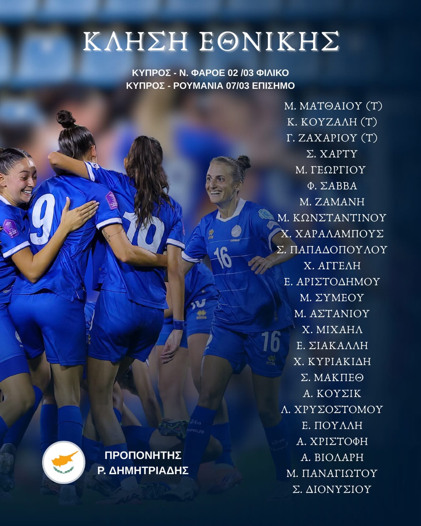 Ο Ομοσπονδιακός μας προπονητής Ρένος Δημητριάδης κάλεσε τις ακόλουθες ποδοσφαιρίστριες: