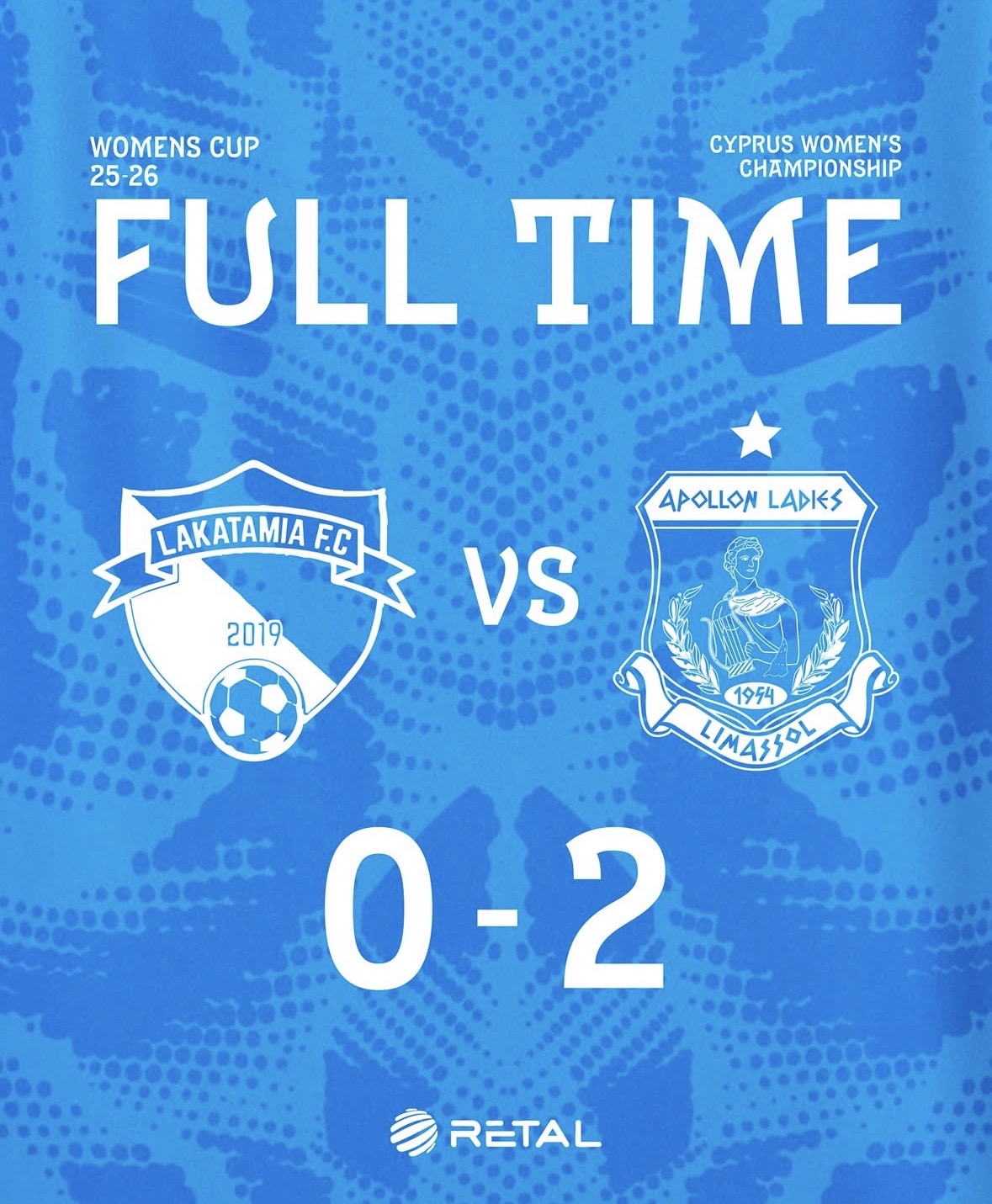 Η Λακατάμια προσπάθησε να αντιδράσει, ωστόσο οι Apollon Ladies διατήρησαν τον έλεγχο του αγώνα και «σφράγισαν» τη νίκη στο 79ο λεπτό, όταν η Constantinou Marilia διαμόρφωσε το τελικό 0-2.