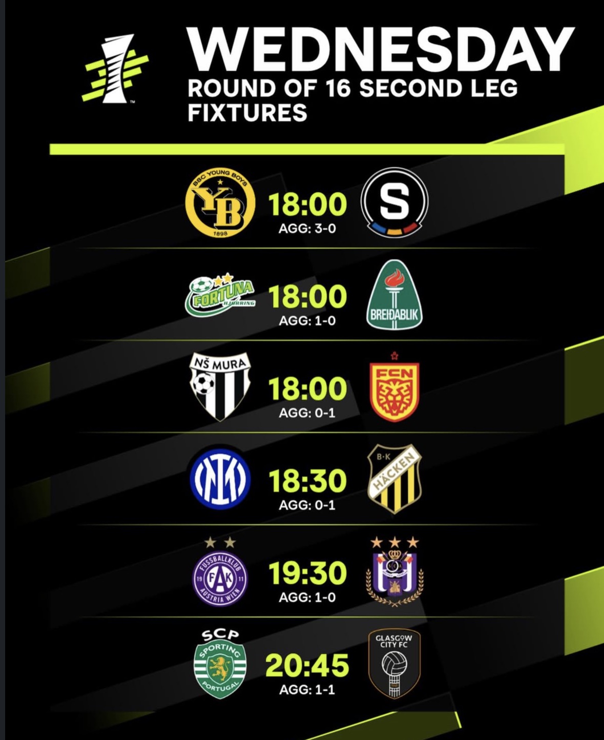Η Mura φιλοξενεί τη Nordsjælland από τη Δανία. Ο πρώτος αγώνας είχε λήξει 1‑0 υπέρ της Nordsjælland, άρα η Mura χρειάζεται νίκη απόψε για να προκριθεί.